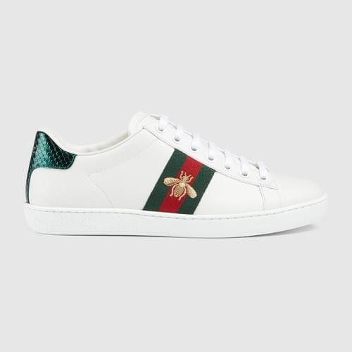 La classica sneaker bassa della Maison si arricchisce di un'ape dorata ricamata sul nastro Web verde e rosso. Un codice proveniente dagli archivi Gucci degli anni '70, l'ape è reimmaginata su modelli contemporanei.
