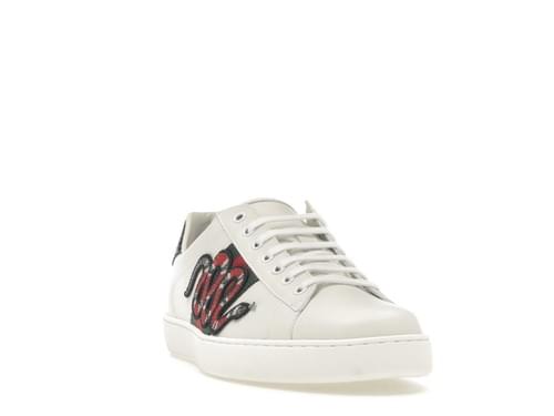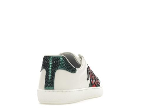 Le Sneakers Gucci Ace con serpente rappresentano una delle versioni più audaci della linea Ace. Realizzate in pelle bianca di altissima qualità, si distinguono per il ricamo del serpente corallo che si snoda lateralmente lungo la tomaia, simbolo di forza, trasformazione e seduzione.